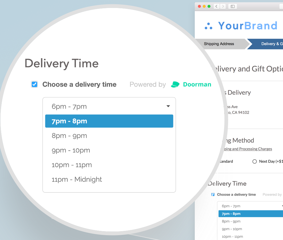 Online retailers of all sizes use the Doorman API to integrate time specific, same day delivery and return pickup into their checkout process and customer experience.